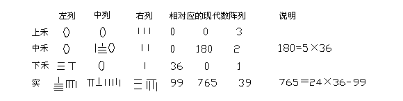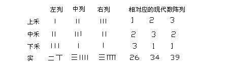按照《九章》的“術(shù)曰”來籌算,布列如下: