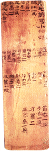圖2:尹灣漢墓出土遣策木牘及其首欄文字截圖