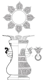 蓋頂(乙壺) 原有“象鼻”狀獸首(甲壺右側) 原有銜環(huán)(乙壺左側)
