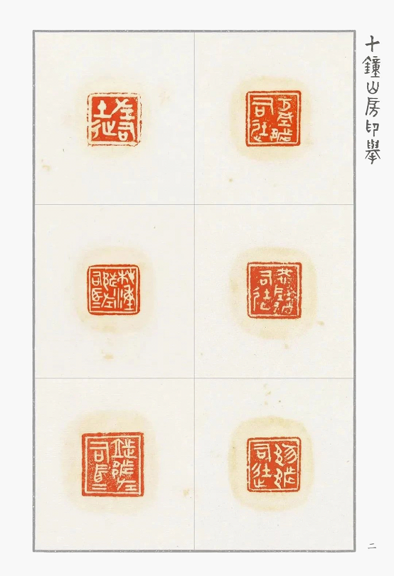 據(jù)考證,涵芬樓影印本《十鐘山房印舉》之體例最爲符合簠齋先生本意。此本面世已有九十八年之久,雖於二十世紀八十年代及近年均曾有再版行世,惜製作粗糙,失卻原印精神。作爲參考資料尚可,若作爲範本則失色甚矣。
