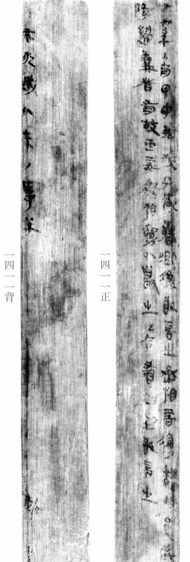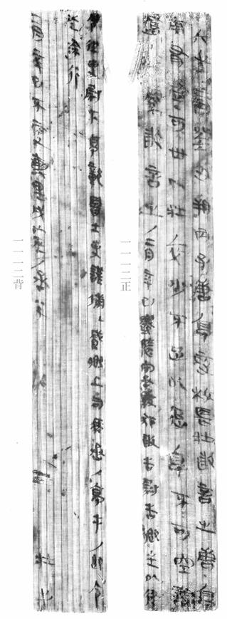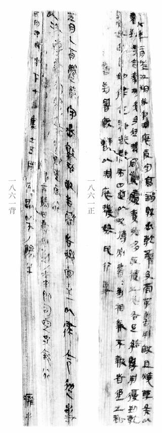 從對比中很明顯可以觀察出兩片木牘的正面筆跡各不同,並且如果我們再對比背面,一樣存在同樣的問題,請見下揭: