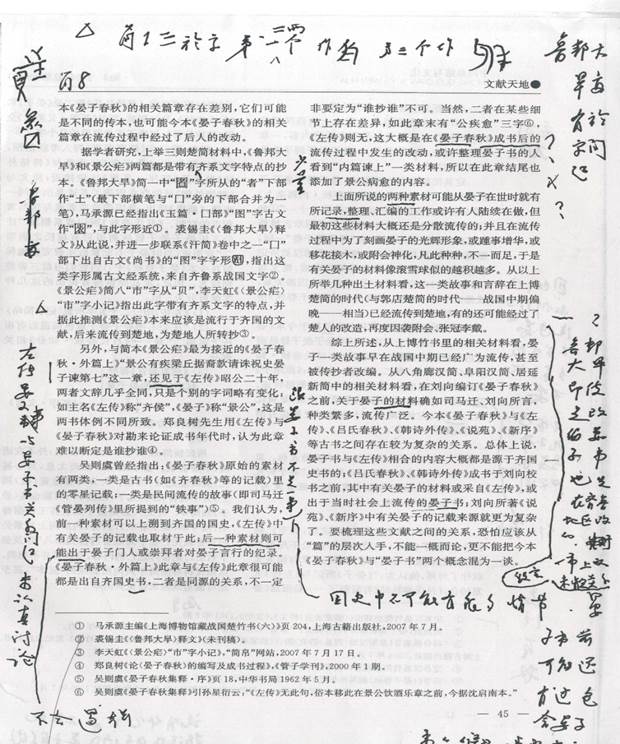 這方面我是有過不止一次深刻教訓的。讀博期間爲了完成論文發(fā)表任務(wù),才有一點材料和想法就忙不迭寫成《從相關(guān)出土材料看晏子書的流傳》一文,沒敢給裘先生看就投了出去。大概是由於用了一些新材料,文章竟獲發(fā)表。裘先生看到之後感到很不行,專門將我叫去辦公室,從頭到尾,從思路到表達,指出很多問題。後來劉釗、陳劍、顧史考、鄔可晶等諸位師友也給我提供了不少意見。在他們的幫助下,我作了大幅修改,陸續(xù)補充資料,這才重寫成文。雖然重寫的文字一定也還有需要繼續(xù)修補的地方,但經(jīng)過這樣一個打磨的過程,自己心裏是比較踏實的。