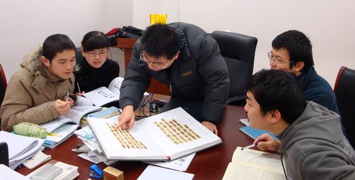 當時中心剛剛成立,一共有三位老師——裘先生、沈培老師、陳劍老師,四名學生——周波(來自武漢大學考古學專業(yè),從裘先生讀博士)、秦倞(由北京大學中文系保送,從陳老師讀碩士)、王晨曦(由山東大學中文系保送,從沈老師讀碩士)和我。我們聽老師講課,同時參與中心的“上博簡字詞全編”項目。項目前期工作是作釋文集釋,切割單字字形。我們各分得一兩篇簡文,以裘先生所作的《子羔》、《魯邦大旱》、《相邦之道》三篇的釋文注釋(均已收入《裘錫圭學術(shù)文集·簡牘帛書卷》,復(fù)旦大學出版社,2012年)爲模板,收集正式發(fā)表和網(wǎng)上發(fā)表的意見,撰寫釋文集釋草稿。切割字形需要使用某些軟件並遵循一定的流程,周波和秦倞對此比較熟悉,就毫無保留地將工作經(jīng)驗和相關(guān)知識傳授給我和晨曦。前期工作告一段落後,周波提議我們四人成立一個“讀書會”,每隔一到兩周開展一次活動,或研讀古書,或熟悉出土材料,或精讀專業(yè)論文。“讀書會”的傳統(tǒng)一直延續(xù)到今天,起初碩博士生不分年級一起開展活動,後來人數(shù)漸多,就改爲一年級新生集中開展活動,二年級以後分組學習。大家暢所欲言,互助互“拍”(當時網(wǎng)上有“拍磚”之語,中心老師皆對學生要求極爲嚴格,不吝批評,同學們稱之爲“拍”),讀書得間則寫成小札,以“讀書會”名義發(fā)表在中心網(wǎng)站上,記得2008年底,《上海博物館藏戰(zhàn)國楚竹書(七)》首發(fā),“讀書會”挑燈夜讀,寫成一批讀書札記推送到中心網(wǎng)站,劉釗老師在QQ群裏發(fā)表了一段激情澎湃的演講: