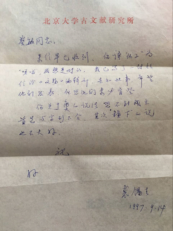 (裘錫圭先生覆書)