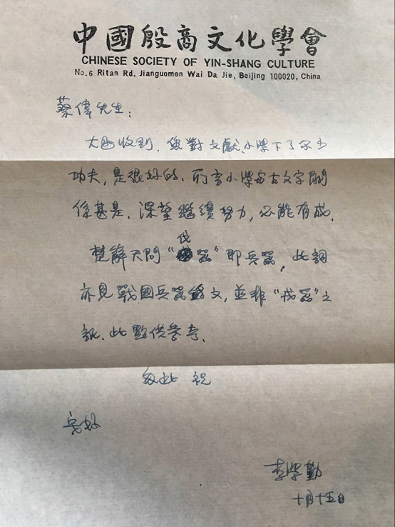在我自學(xué)過程中,曾寫信給裘錫圭、李學(xué)勤先生請(qǐng)教問題,都得到了兩位先生的回信,他們的鼓勵(lì)和肯定讓我更加堅(jiān)定了信心,我始終都非常感謝他們!二十多年來,兩位先生的書信我都很好地保存著。