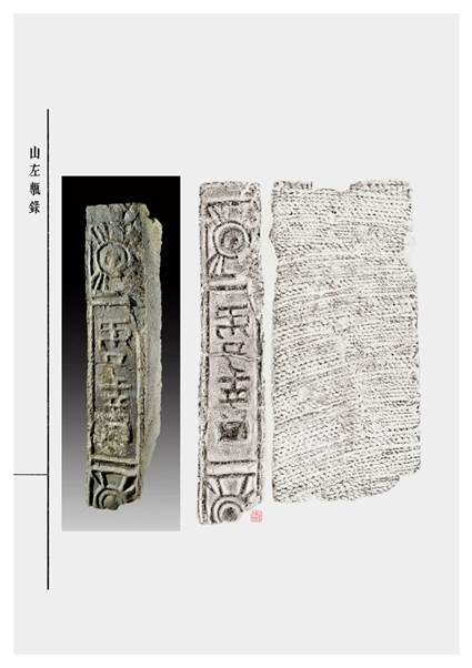 《山左磚錄》第三輯收錄山東魯中地區(qū)東漢至清代古磚48品,51塊,每品印有古磚彩色實(shí)物照片、反映古磚各面位置關(guān)係的拓片,對(duì)個(gè)別殘品同模古磚收錄了複品。印本一函一冊(cè),開本高43釐米,寬32釐米,宣紙彩印線裝。