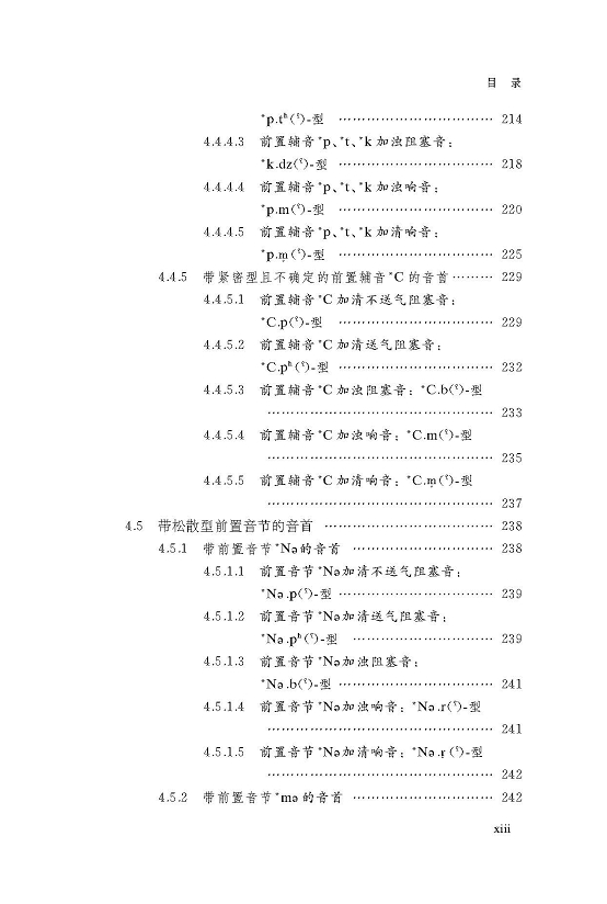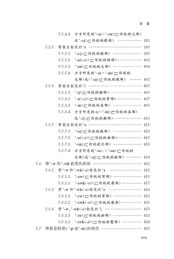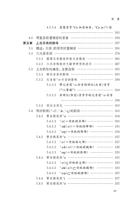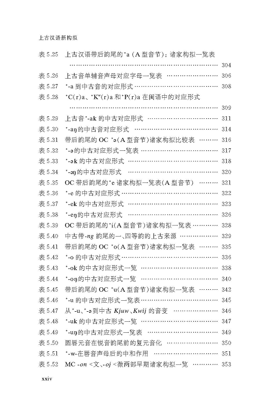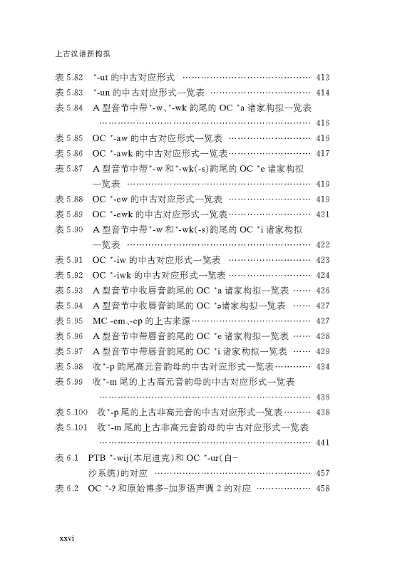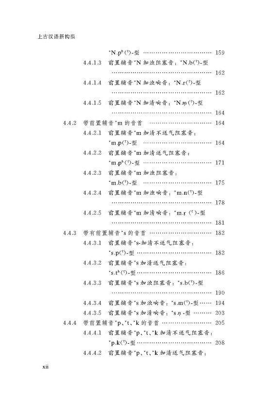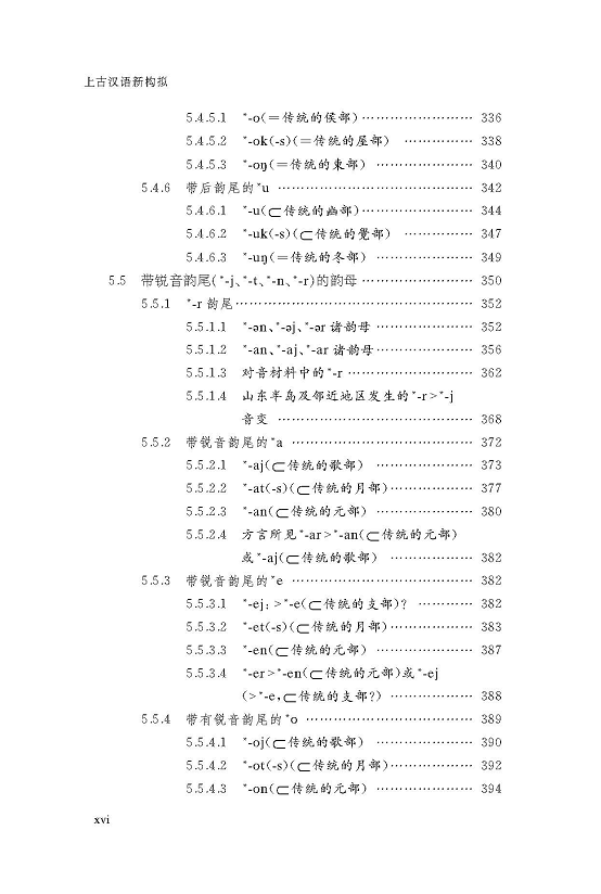 本書是來(lái)國(guó)龍、鄭偉、王弘治三人合作翻譯的結(jié)晶。2015年10月復(fù)旦大學(xué)“古文字與漢語(yǔ)歷史比較音韻學(xué)”工作坊會(huì)議期間,我們決定合作翻譯《上古漢語(yǔ)新構(gòu)擬》?,F(xiàn)代語(yǔ)言學(xué)向來(lái)以術(shù)語(yǔ)與符號(hào)繁多著稱,爲(wèi)了統(tǒng)一術(shù)語(yǔ)的翻譯,我們?nèi)讼确诸^翻譯了本書的索引?,F(xiàn)代語(yǔ)言學(xué)的一般術(shù)語(yǔ),我們參考了沈家煊先生翻譯的大衛(wèi)·克里斯特爾(David Crystal)的《現(xiàn)代語(yǔ)言學(xué)詞典》(A Dictionary of Linguistics and Phonetics;中文版由商務(wù)印書館2000年出版)。需要特別說(shuō)明的是,對(duì)本書中的一個(gè)重要概念“onset”的翻譯,我們選擇了“音首”這一詞(潘悟雲(yún)先生的《漢語(yǔ)歷史音韻學(xué)》中也用了“音首”一詞,見(jiàn)上海教育出版社2000年版第102頁(yè))。本書中“音首”指的是上古漢語(yǔ)音節(jié)的首要部分,即主母音之前的所有音節(jié)成分,它可以包括前置音節(jié)成分(最多可以有兩個(gè)輔音,包括前綴)、主要音節(jié)的聲母和介音。中文版的章節(jié)、格式和符號(hào)基本都遵從英文版,如在構(gòu)擬的上古音前加星號(hào)(*),中古音標(biāo)音都用斜體,字詞的釋義用單引號(hào)等。