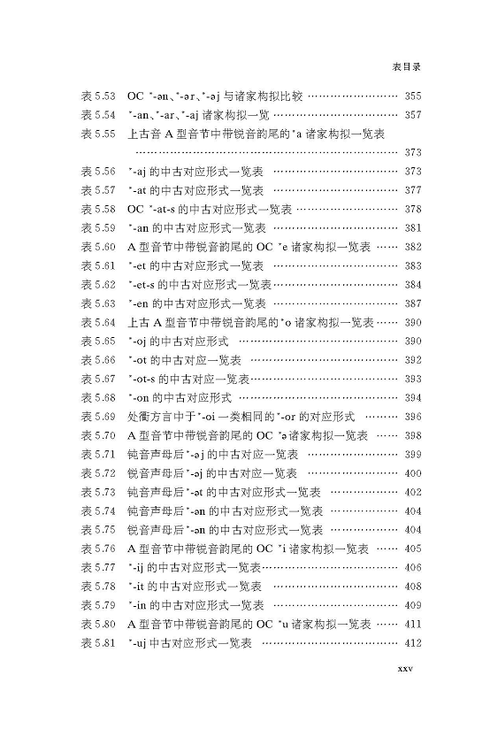 書末所附《構(gòu)擬詞表》包括了全書中討論過(guò)的全部漢字,並標(biāo)注了相應(yīng)頁(yè)碼。讀者也可從上述網(wǎng)站下載構(gòu)擬全表,這是我們2014年9月20日上傳的,其中包含約5000字,分爲(wèi)三個(gè)以不同形式排序的PDF文檔。同時(shí)也還有一個(gè)單獨(dú)的表格文檔可供下載,內(nèi)容與PDF文檔完全一致。5000字的構(gòu)擬全表也收録了本書《構(gòu)擬詞表》中的內(nèi)容。 長(zhǎng)短兩份詞表使用的是完全相同的構(gòu)擬系統(tǒng)。