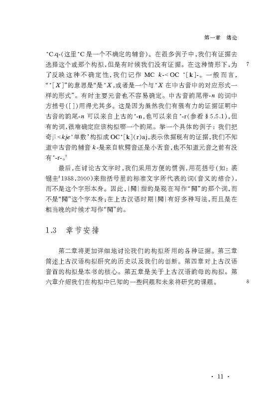 在《上古漢語(yǔ)新構(gòu)擬》譯稿完稿之際,我們願(yuàn)意借此機(jī)會(huì)感謝白一平先生和沙加爾先生對(duì)我們的信任與支持。我們還要謝謝馬坤先生和沈瑞清先生細(xì)心校閱譯稿。譯事繁難,尤其是翻譯這樣一部?jī)?nèi)容複雜豐富的語(yǔ)言學(xué)著作。三位譯者都有自己的工作和研究項(xiàng)目,只能利用難得的工作間隙,見(jiàn)縫插針、忙裏偷閒來(lái)從事翻譯工作。雖然我們也是誠(chéng)惶誠(chéng)恐、謹(jǐn)慎從事,盡了最大的努力,但是一定還會(huì)有不少錯(cuò)漏,敬請(qǐng)讀者不吝教正爲(wèi)幸。