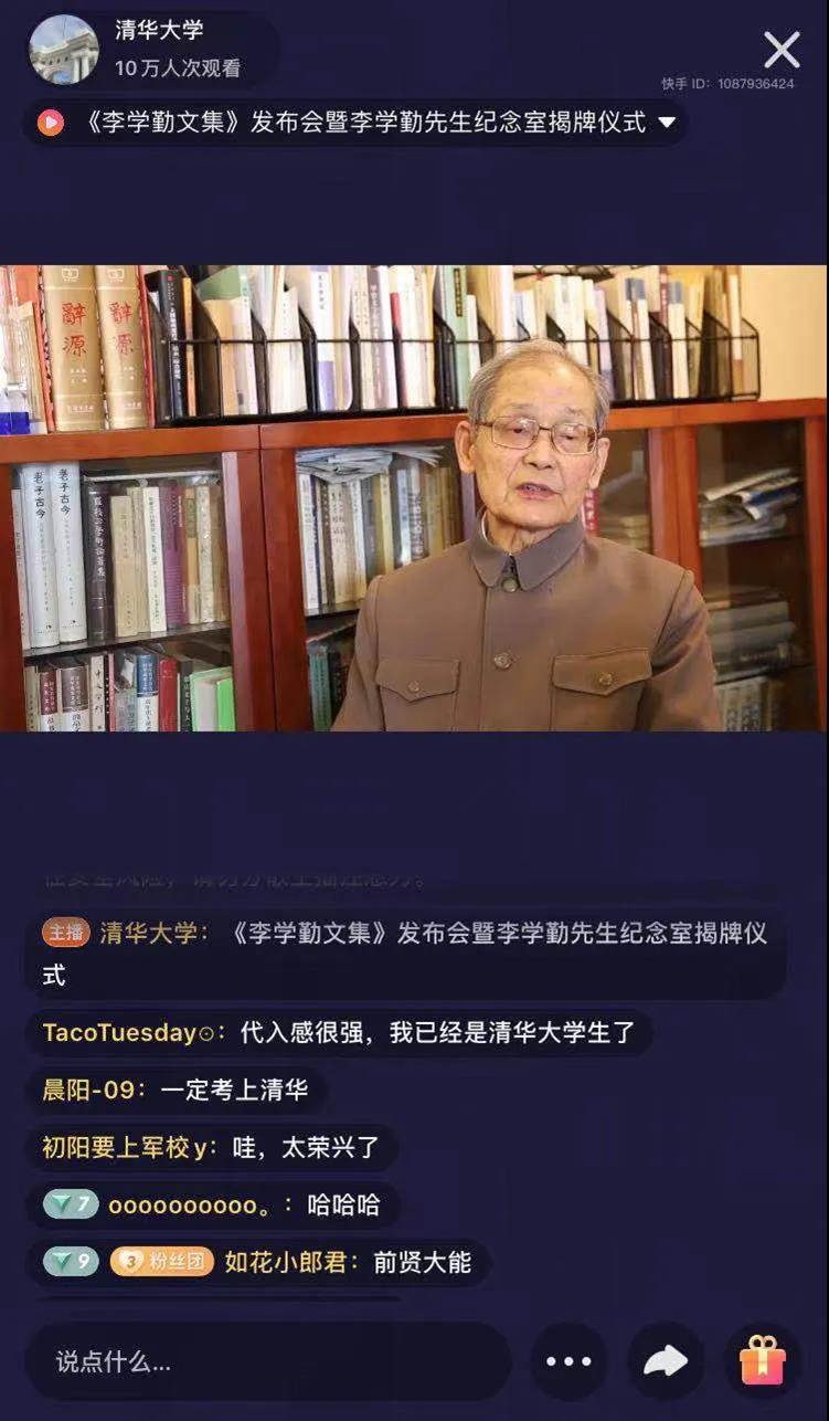 本次發(fā)布會由清華大學出土文獻研究與保護中心、江西教育出版社聯(lián)合主辦,出土文獻研究與保護中心主任黃德寬主持。清華大學副校長彭剛,文科建設處處長楊永恒,文化建設辦公室主任趙鑫,人文學院院長萬俊人、黨委書記孫明君,李學勤先生家屬等出席發(fā)布會。來自清華大學人文學院、出土文獻研究與保護中心等部門的70余位師生代表參加了現(xiàn)場活動。同時,清華大學新浪微博、快手,學堂在線等平臺進行了全球直播,各地專家、學者,李學勤先生生前好友、受業(yè)弟子以及社會各界人士齊聚云端,超20萬人次共同見證《文集》的發(fā)布。
