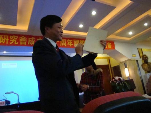 吳振武教授在開幕式上展示中國古文字學(xué)會(huì)第1次年會(huì)油印本論文