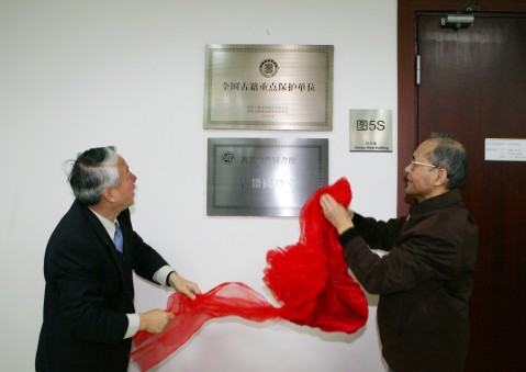 11月12日,我?!叭珖偶攸c保護單位”揭牌儀式在光華樓舉行。我中心裘錫圭教授出席儀式,并與校黨委書記秦紹德教授共同為“全國古籍重點保護單位”揭牌。我校葛兆光、周振鶴、陳尚君、張汝倫等學者代表及相關部門負責人出席儀式。副校長桂永浩出席儀式并講話,來自上海圖書館的陳先行研究員和我校史地所專家周振鶴教授也先后發(fā)言,對復旦圖書館獲得這一殊榮表示祝賀。揭牌儀式由校圖書館館長葛劍雄教授主持。