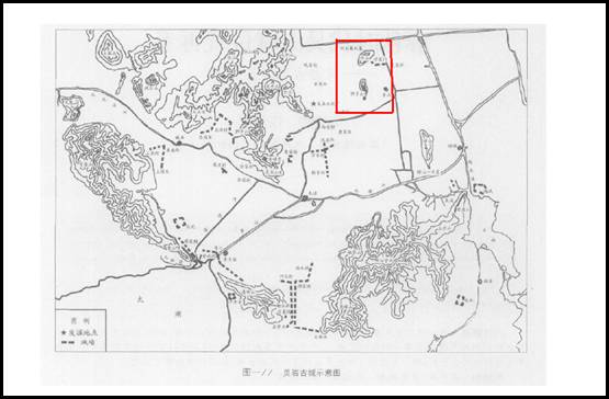 靈巖古城示意圖(陸雪梅、錢公麟:《春秋時(shí)代吳大城位置再考——靈巖古城與蘇州城》),紅框內(nèi)為何山、獅子山