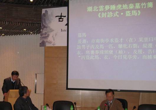 會(huì)議首天舉行了四場(chǎng)主題演講。主講人是我中心裘錫圭教授、挪威奧斯陸大學(xué)東歐與東方語文系何莫邪教授、臺(tái)灣中央研究院文哲研究所林慶彰教授以及美國(guó)夏威夷大學(xué)哲學(xué)系安樂哲教授(Roger T. Ames)。裘錫圭教授演講的主題爲(wèi)“再談古文獻(xiàn)以‘埶’表‘設(shè)’”。劉釗教授提交了論文《說秦簡(jiǎn)“右剽”一語并論歷史上的官馬標(biāo)識(shí)制度》。