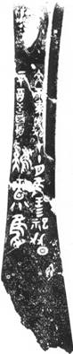 因骨片照片過(guò)小,且字的筆劃中鑲嵌的綠松石有的還存在,有的已經(jīng)脫落,字的筆劃看上去顏色不同,因此有的筆劃不太清楚。