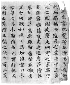 殘篇以言、轅、園為韻(元部平聲);蕩、莽、敞、罔為韻(陽部上聲);川、雲(yún)、勤、旋、文、軍為韻(川[33]、旋為元部平聲,其餘文部平聲,文元合韻);怨、然、田、焉為韻(田為真部平聲,其餘元部平聲,“怨”,古讀平聲[34]),真元合韻);後、右為韻(後為魚部上聲、右為之部上聲,魚之合韻[35]);知(智)、意為韻(“知(智)”為支部去聲、“意”為之部去聲,支之合韻[36]);思、謀為韻(之部平聲);天、千為韻(真部平聲);家、華為韻(魚部平聲);馳<虵/蛇>、加、瘥、波為韻(歌部平聲);赫、??<瘼>、宅為韻(鐸部,入聲);衡、槍、庚為韻(陽部平聲);區(qū)、基為韻(“區(qū)”為魚部、“基”為之部,魚之合韻[37]);下、武、後、五、緒、古、狩、覩、祖、符、寡、雅為韻(“狩”為幽部上聲、其餘魚部上聲(“符”為平聲),幽魚合韻);徒、書、苗為韻(“苗”為宵部平聲、其餘魚部平聲,魚宵合韻[38]);府、部、與、後為韻(魚部上聲);并、楊、荊、征為韻(“楊”為陽部平聲、其餘耕部平聲,耕陽合韻[39]);惟、微、危、譏為韻(微部平聲[40])。
