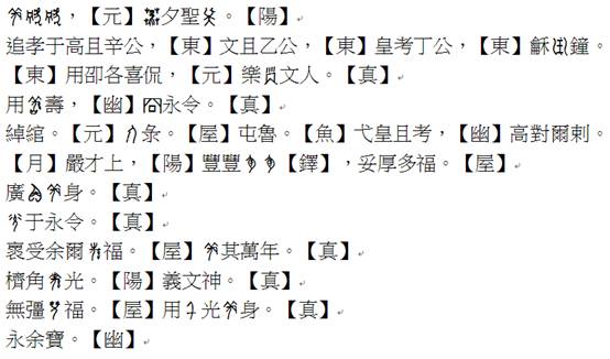 下面讓我們來具體討論一下〈周頌〉與金文中所用的成語,韻文及四言詩體的形成。