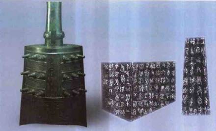 第三,而這種用韻文表達的形式的出現(xiàn),是與音樂的使用和發(fā)展有莫大的關(guān)係。特別是西周禮樂中最重要的樂器編甬鐘,在西周穆王(976-922 B.C.)時期以後才出現(xiàn)了《周禮》中所描述八件一組、與編磬和鎛共同使用的範式。從考古資料來看,西周典章文物的成形,如《周禮》所描述的鼎簋制度、樂懸制度等殆經(jīng)數(shù)世到穆王(976-922 B.C.)、恭王(922-900 B.C.)時期,始具雛型。就樂器而論,西周晚期以前,禮樂中最重要的樂鐘─甬鐘,還是延襲商代的三件一組的規(guī)制。[48]穆王(976-922 B.C.)以後禮器樂器的組合特別是鼎簋鍾等開始定型並呈等級序列,差近三禮所述。如我們在此文開篇所說,樂鐘雖然有雙音的效果,但是真正用正側(cè)鼓雙音構(gòu)成四聲音階的旋律效果,也是在西周中晚期的中義鐘時期和