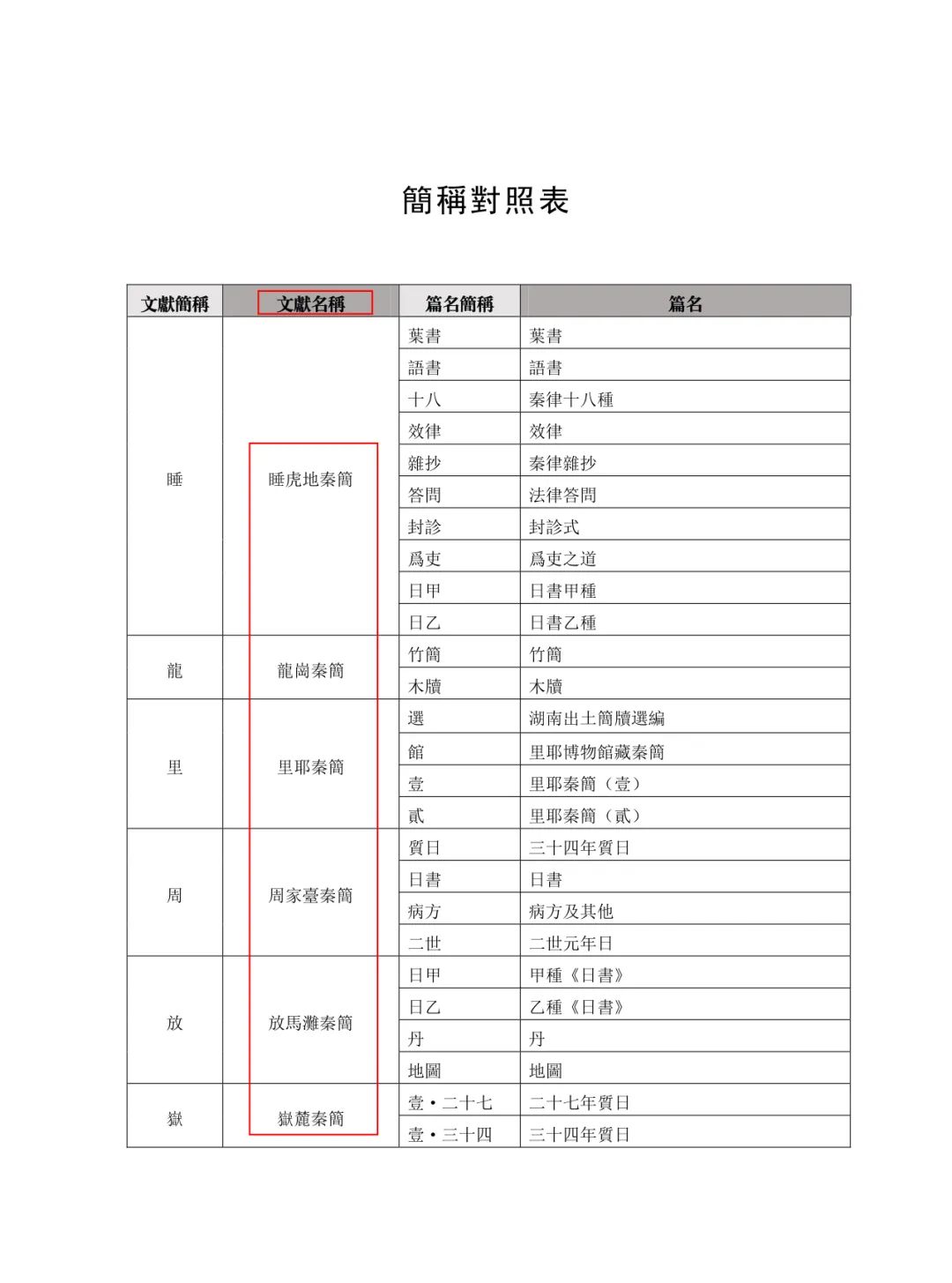 簡稱對照表