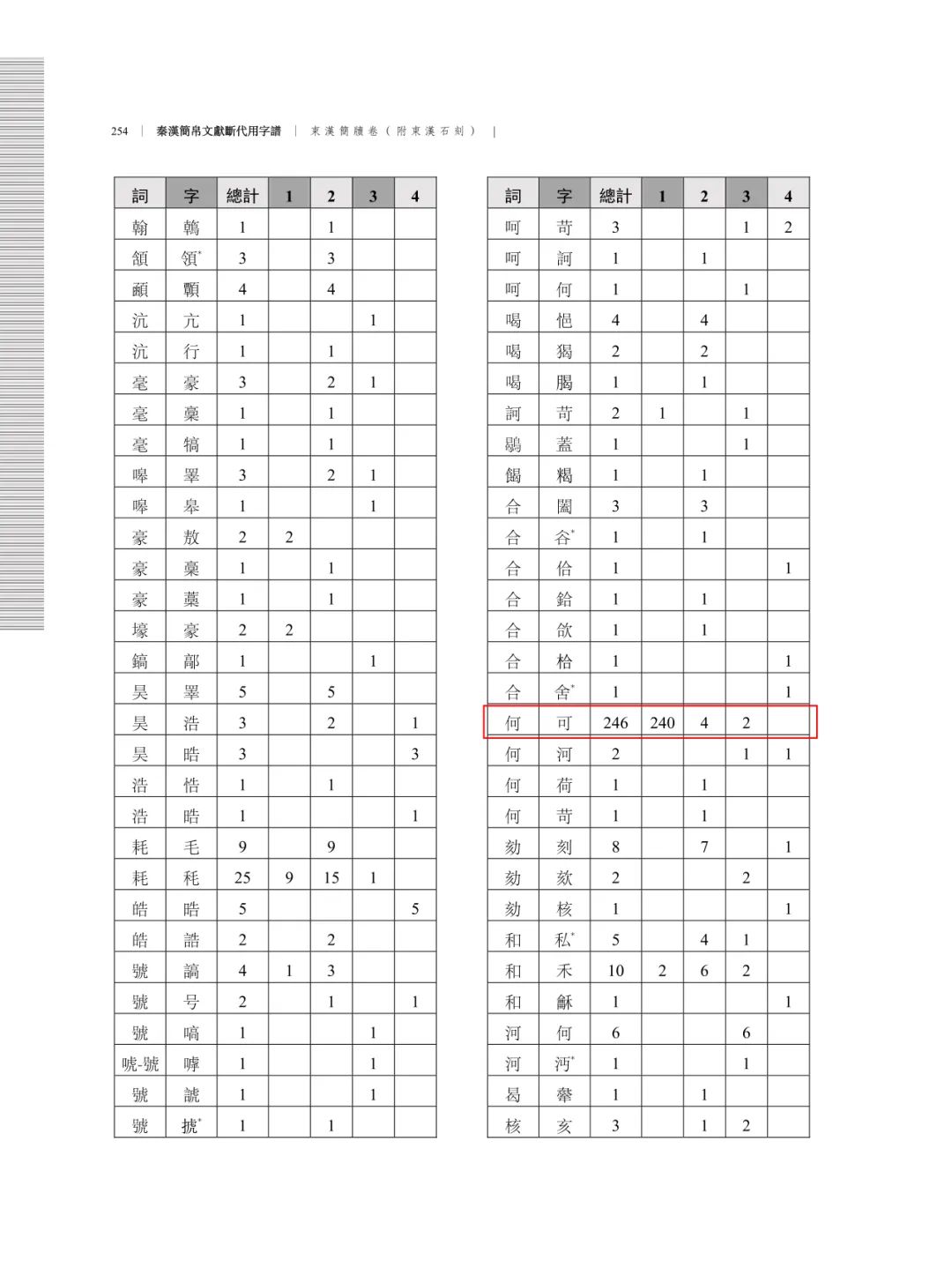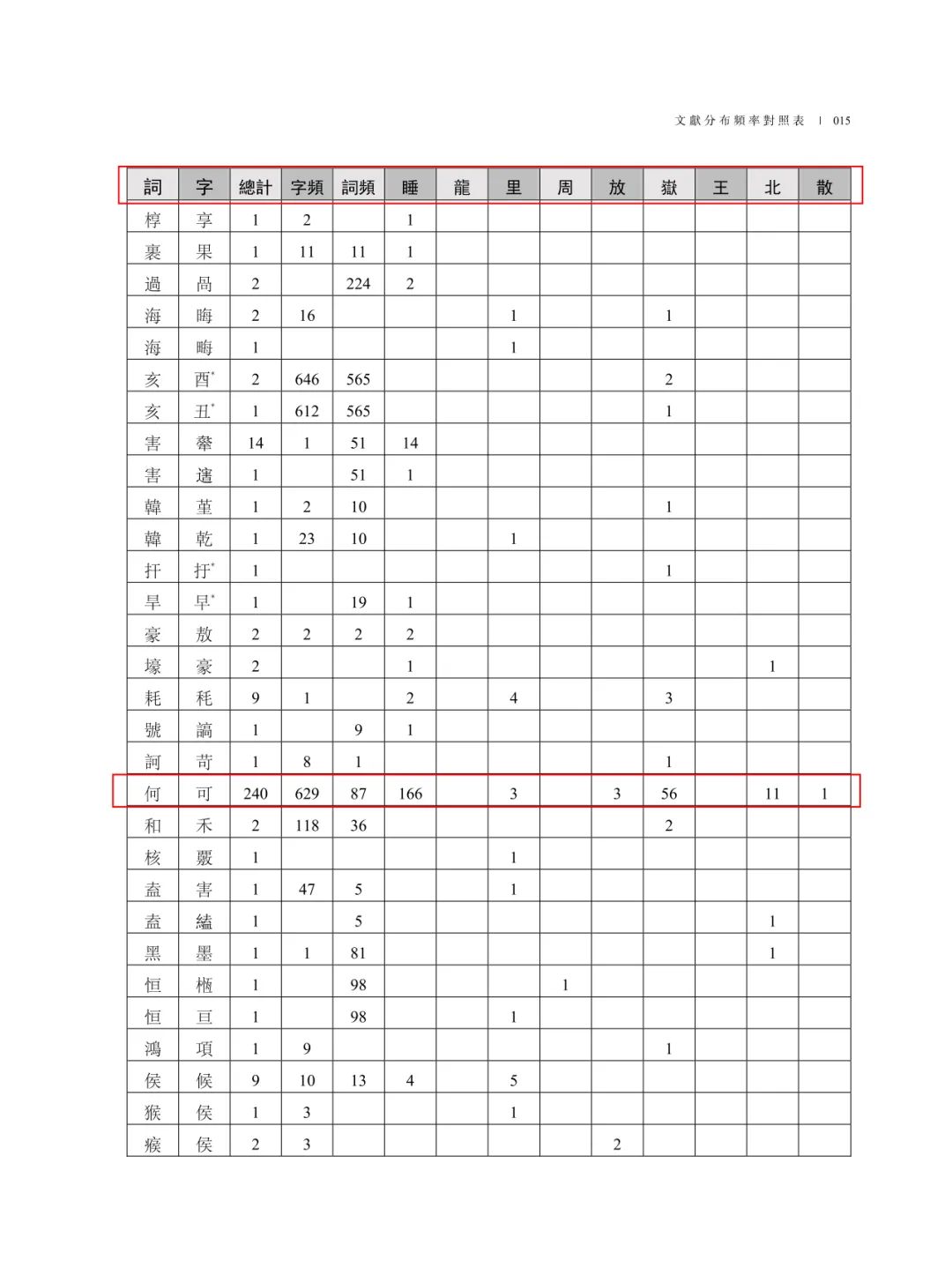 用字頻率斷代對照總表