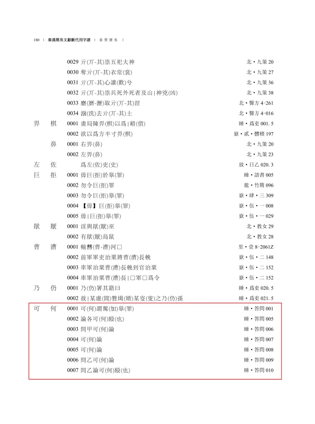 本書是基于完整統(tǒng)計(jì)數(shù)據(jù)的、以詞和詞義為單位的用字系統(tǒng)整理。通過斷代呈現(xiàn)、歷時(shí)對照、辭例與統(tǒng)計(jì)數(shù)據(jù)相結(jié)合,實(shí)現(xiàn)秦漢簡帛文獻(xiàn)不同時(shí)期用字的并現(xiàn)與檢索。全書以斷代的形式編排,共四卷,分別為秦簡牘卷、西漢早期簡帛卷、西漢中晚期簡牘卷和東漢簡牘卷(附東漢石刻)。體例嚴(yán)謹(jǐn)創(chuàng)新,脈絡(luò)分明。首列實(shí)際用字字形和所記詞的詞形用字,輔以該組用法所出之辭例及出處,窮盡各組用字在不同斷代的總頻率及其文獻(xiàn)分布,呈現(xiàn)秦漢簡帛文獻(xiàn)科學(xué)、準(zhǔn)確的用字材料。除了以秦漢簡帛語料庫作為研究基礎(chǔ)外,成書過程中的多路徑用字審核、字詞分布統(tǒng)計(jì)、多形式輸出等步驟均在語料庫中進(jìn)行,實(shí)現(xiàn)了真正意義上的基于數(shù)據(jù)庫的工具書編纂。此外,附錄部分以電子文檔的形式單獨(dú)呈現(xiàn)在配套的數(shù)字化網(wǎng)絡(luò)平臺上,實(shí)現(xiàn)紙質(zhì)正文與電子附錄二者相輔相成,供研究者協(xié)同使用。