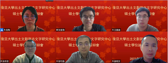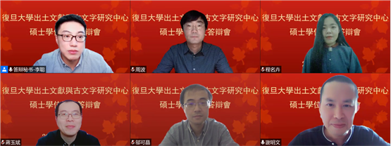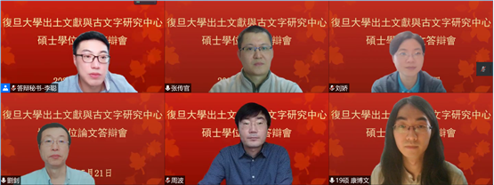 王鵬遠(yuǎn)的碩士論文題目爲(wèi)《古漢字“變形音化”現(xiàn)象再研究》,導(dǎo)師爲(wèi)鄔可晶副研究員。答辯委員會(huì)由復(fù)旦大學(xué)出土文獻(xiàn)與古文字研究中心張富海副教授、謝明文副研究員、張傳官副研究員組成。張富海副教授擔(dān)任答辯主席,段陶博士擔(dān)任答辯秘書(shū)。