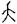 為倒矢之形,多見於合體字的偏旁,又或訛作