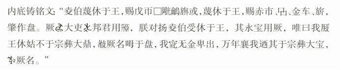 剛看到紙本原文,據(jù)注釋,再加上檢索,才知道《山西珍貴文物檔案》10(科學(xué)出版社2020年)【2020-山西珍貴文物檔案10·青銅館卷-山西省文物局【山西省文物局編:《山西珍貴文物檔案》10,科學(xué)出版社2020年?!俊?、《倗金集萃——山西絳縣橫水西周墓地出土青銅器》(上海古籍出版社2021年)早就公佈過凌伯盤的釋文了—— 此外,謝明文《桋伯盤銘文考釋》(復(fù)旦大學(xué)出土文獻(xiàn)與古文字研究中心網(wǎng)站,2021年7月8日,http://m.itcscarpellini.com/Web/Show/4805)對(duì)此銘也有討論;黃錦前《夷伯盤考釋》(《文物季刊》2022年第1期)一文,對(duì)銘文也有考釋。兩種釋文,釋出了原書誤釋的個(gè)別字;但“唯曰”之後的文句,仍然大都沒有讀通—— (謝文之釋文) (黃文之釋文) ——孤陋寡聞,慚愧慚愧…… 不過,已有的釋文與句讀,既有不少可取之處,也頗有可補(bǔ)充者;我們對(duì)釋文的看法或可提供一些參考。 原釋文將第二行首字釋成“[岡光]”,可信。我們?cè)瓤醋鳌熬狻眱蓚€(gè)字,是錯(cuò)誤的。可爲(wèi)佐證者,若是看作一字,則前四行都是每行十字,顯然書寫者精心謀劃過行款佈局。若是看作兩個(gè)字,第二行變成十一字,字?jǐn)?shù)上就出格了。再者,西周臣民對(duì)周王的稱呼是“王”,本銘即是如此,這裏若是換成“君”,用辭上顯然也不合適。 “[岡光]”字,似當(dāng)讀作“光”。銘文“榮光 (鸙-爚/燿) (動(dòng))”,或當(dāng)是指凌伯對(duì)於周王給予自己的賞賜,感到光榮萬分,猶如火光一般閃耀升騰? |